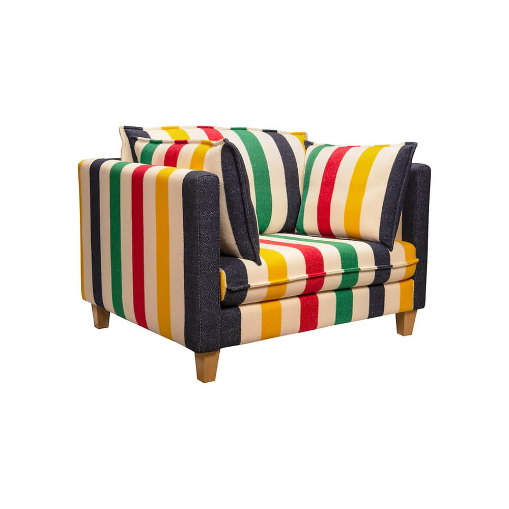 Natural wood, faux leather and a soft linen-like fabric combine in this elegant and warm accent chair. Featuring a pillowy back and a generous seat, Kenari packs good looks and comfort into one modern silhouette.